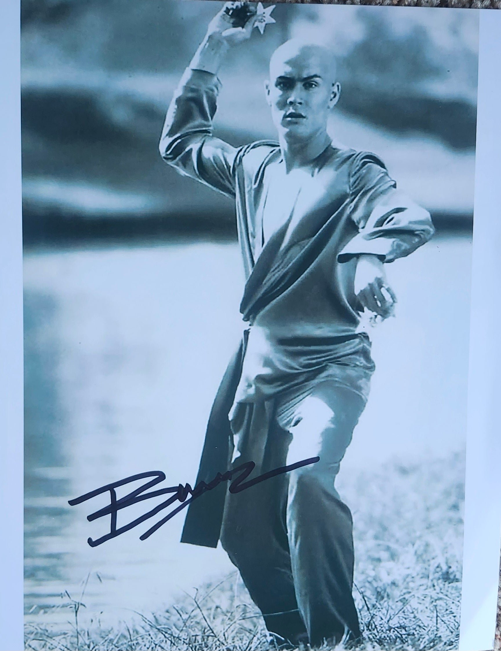Brandon Lee signed photo, kung fu image, complete with number certificate document and hologram noting signature date and location.
